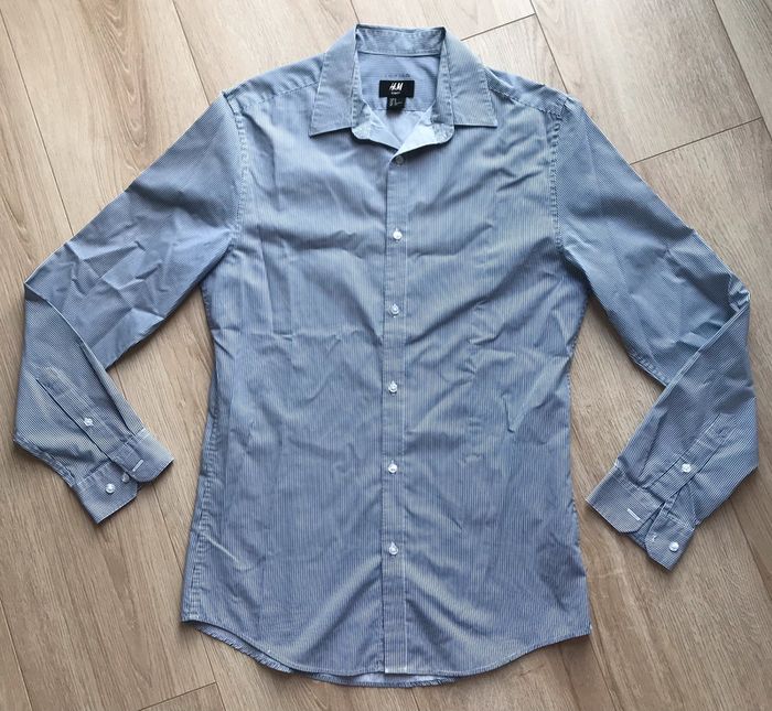 Chemise à rayures verticales Bleu et blanc Taille S (Slimfit) Marque H&M Easy Iron Très bon état #chemise #rayures