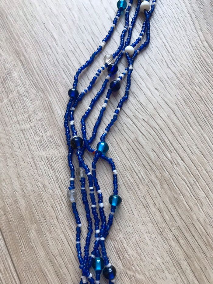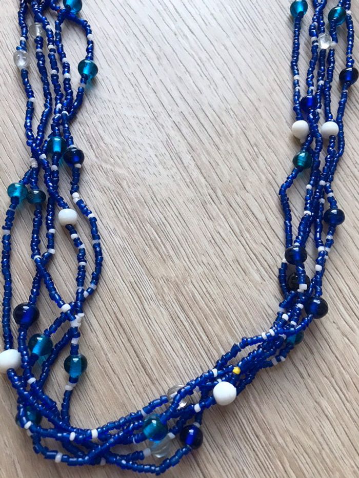 Collier long avec perles bleues et blanches - photo numéro 3