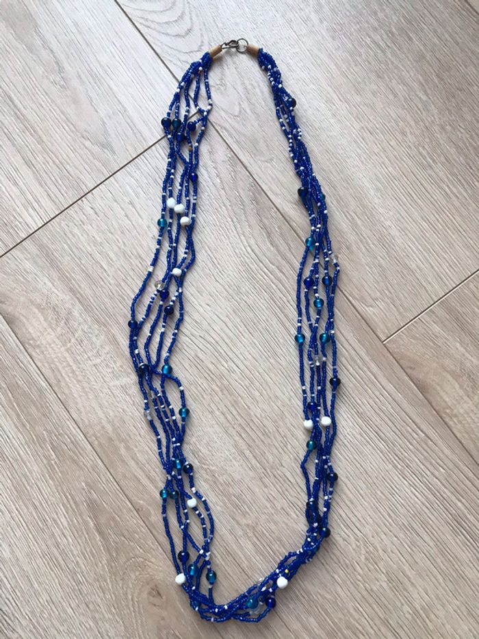 Collier long avec perles bleues et blanches - photo numéro 1