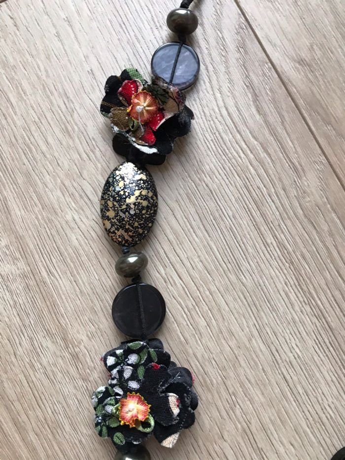 Collier long noir avec fleurs en tissu - photo numéro 3
