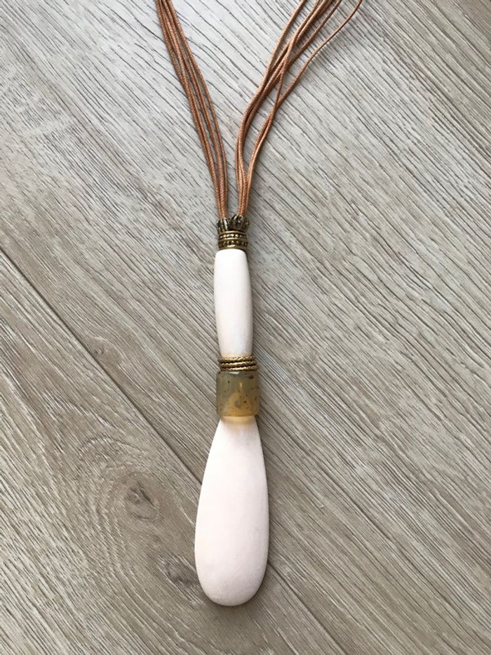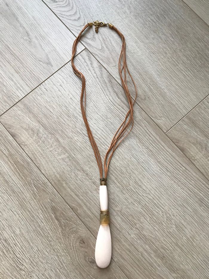 Collier long avec pendentif beige - photo numéro 1