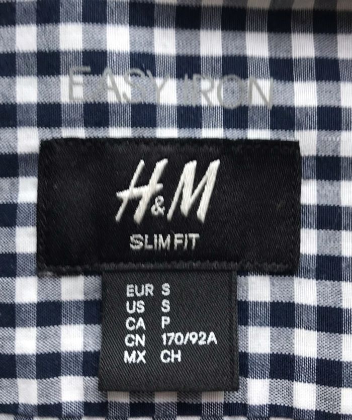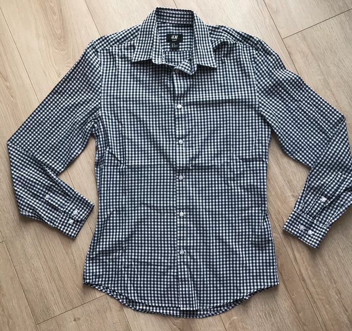 Chemise à carreaux Bleu marine et blanc Taille S (Slimfit) Marque H&M Easy Iron Très bon état #chemise #carreaux