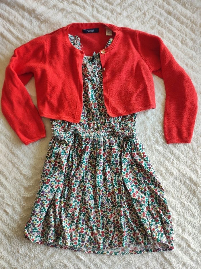 Robe fleurie kiabi et cardigan okaidi