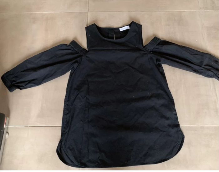 blouse noire elle a des élastiques au Niveau des poignets / avant-bras et au niveau des épaules c’est dénudé pour de supers soirées a juste été lavé