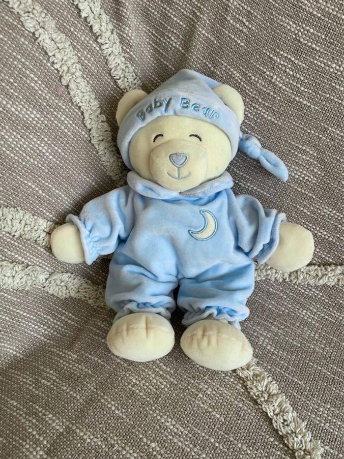 Peluche doudou 30cm Gipsy ours beige pyjama bleu très bon état - photo numéro 1