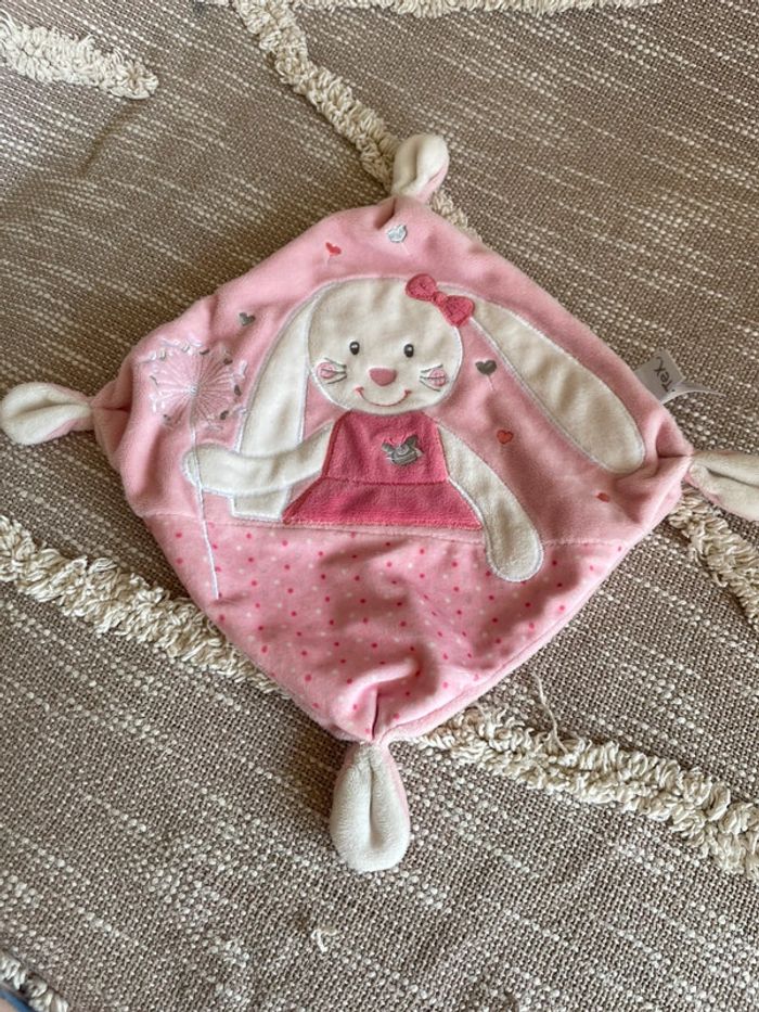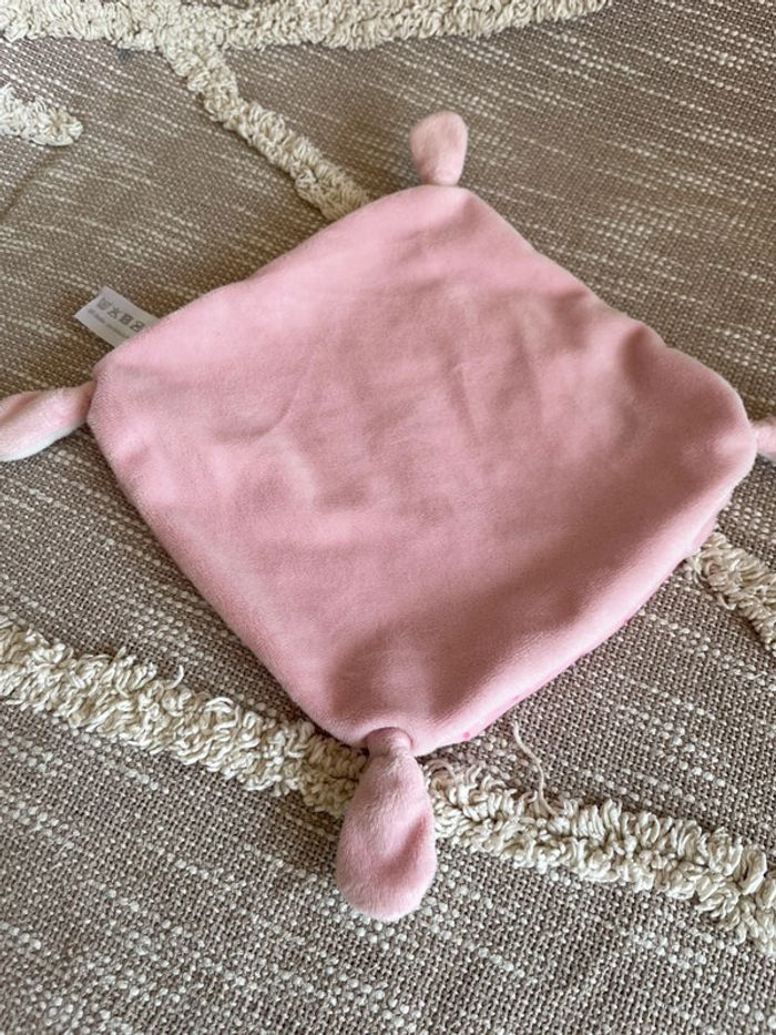 Peluche doudou plat carré 21cm tex lapin rose et blanc très bon état