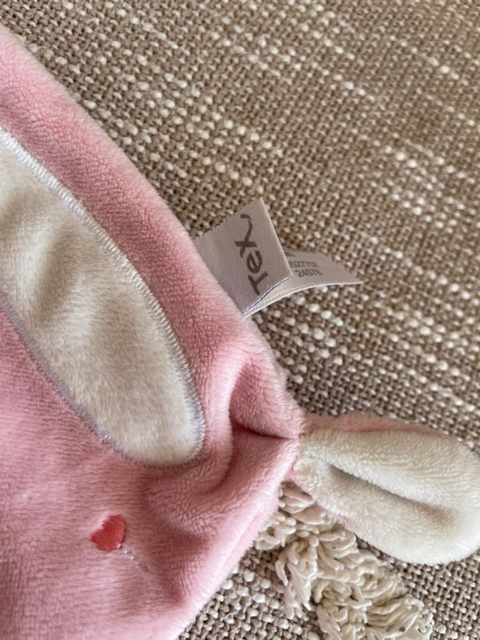 Peluche doudou plat carré 21cm tex lapin rose et blanc très bon état - photo numéro 3