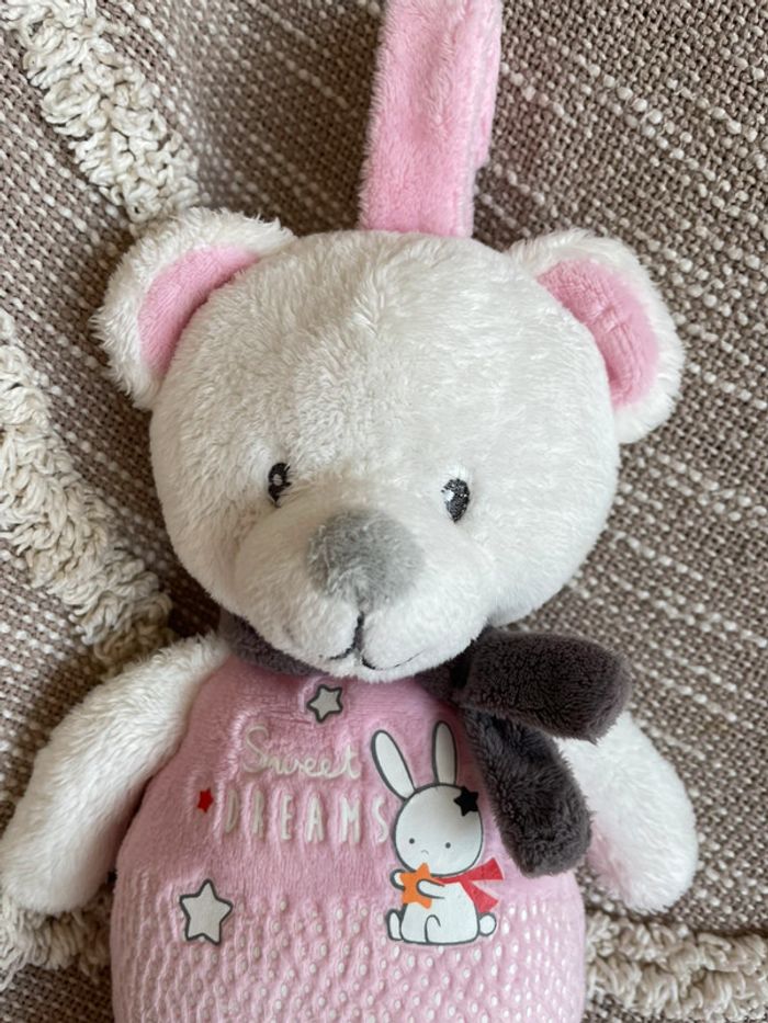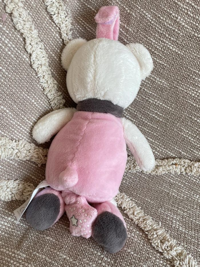 Peluche doudou musical 26cm Mots d’Enfants ours blanc avec doudou rose très bon état - photo numéro 4