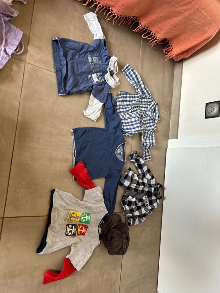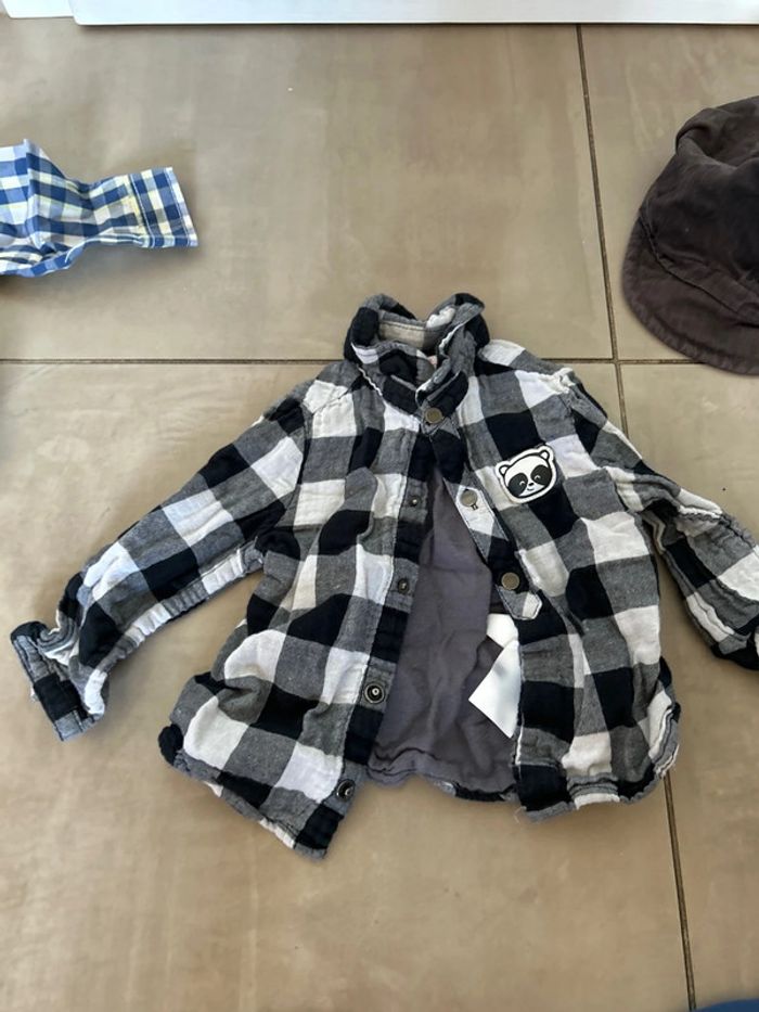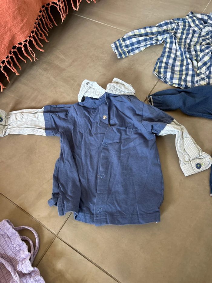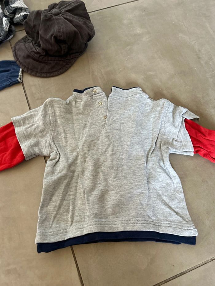 2 chemises 1 pull 2 t shirt manches longues 1 casquette #lot #lot12moisgarcon #lottshirtmancheslongues #tshirtmancheslonguesgarçon #12moisgarçon #tapealoeil #dupareilaumeme #babyfabulous #influx #kimbaloo