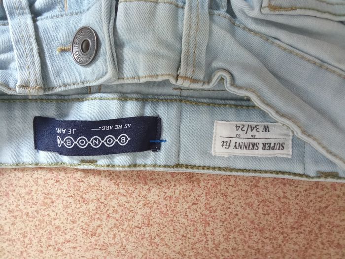 Très joli jean clair marque bonobo , la taille du jean est sur la dernière photo. Plutôt fin Une légère tâche ( photo 4). Bon état général. Beaucoup d'autres vts garçon mm taille également à vendre ds mon dressing et réduction activée
