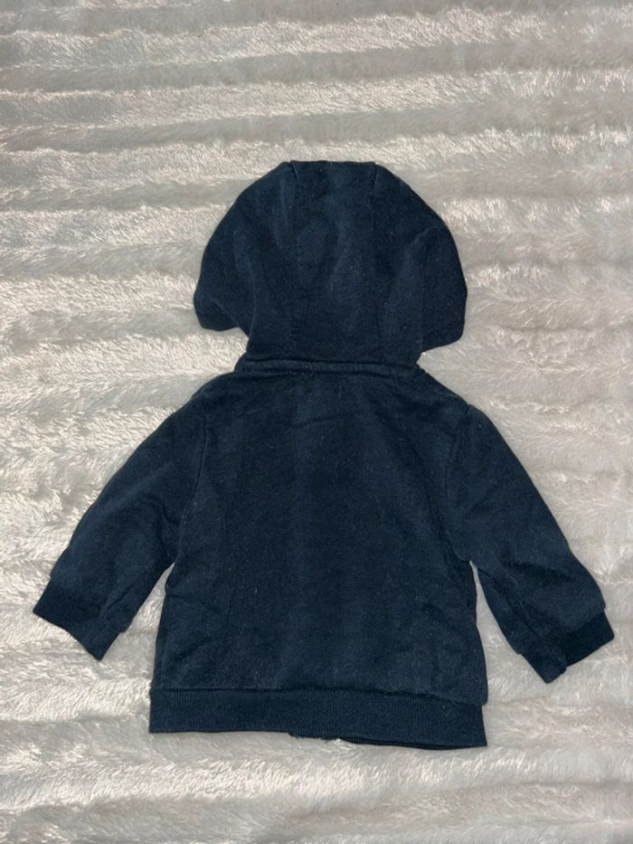 Veste à capuche bleu en très bon état de taille 3 mois