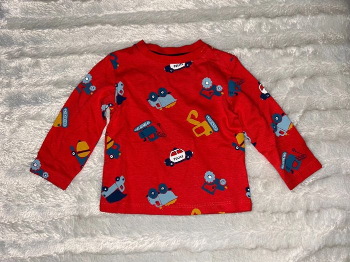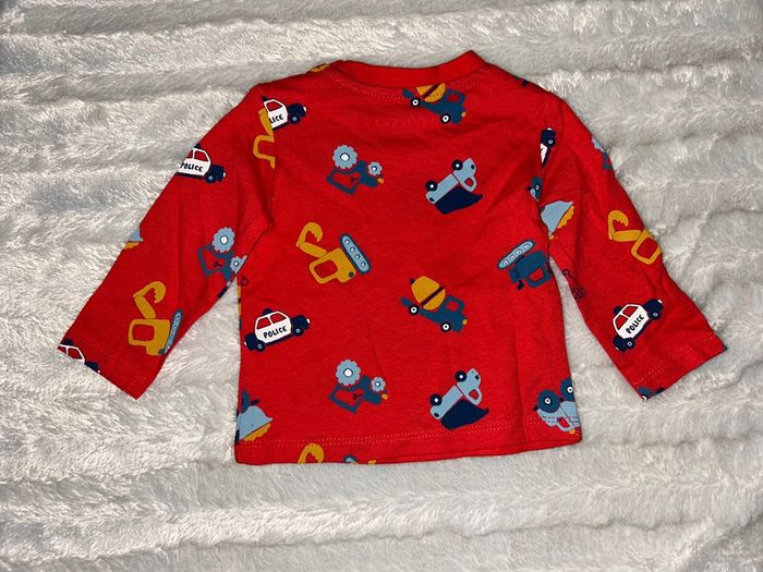 T-shirt manche longue rouge à motif neuf, de taille 3 mois