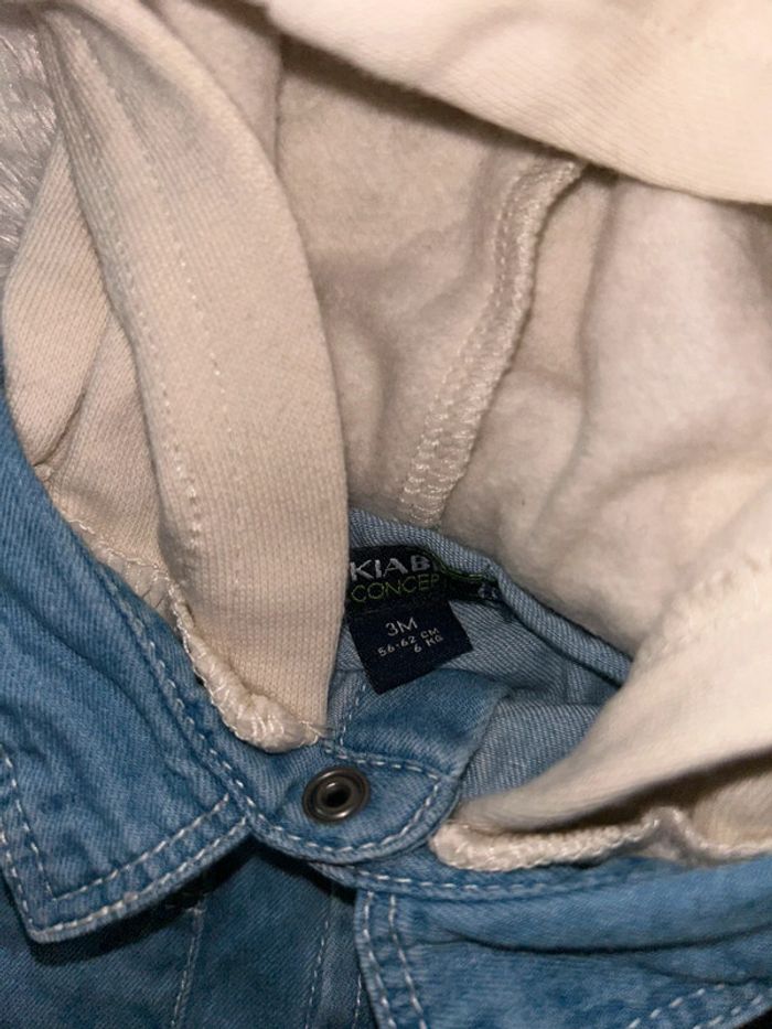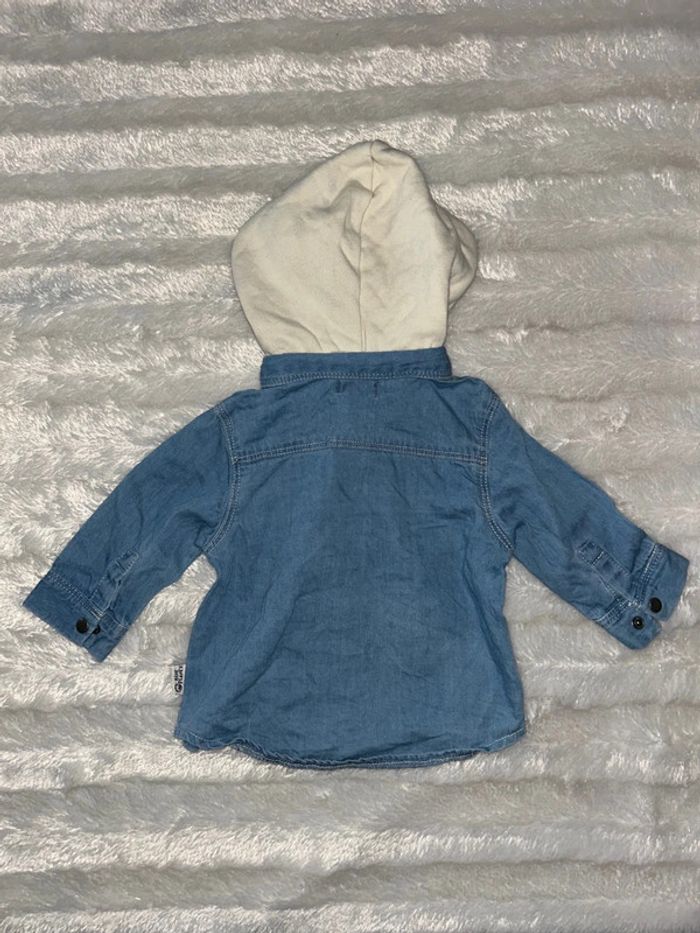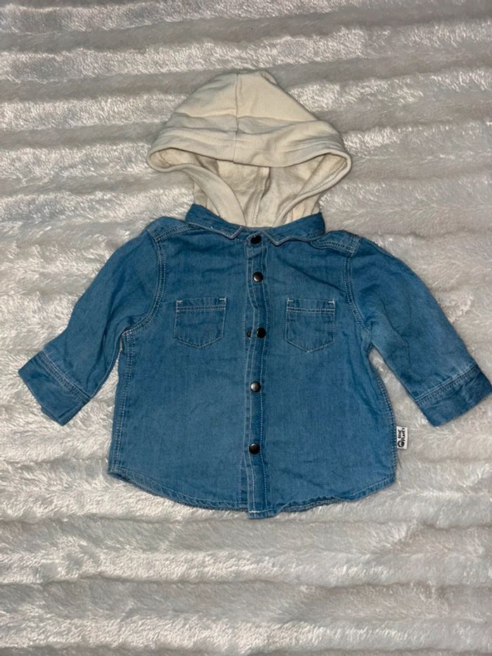 Chemise manche longue avec capuche en très bon état de taille 3 mois
