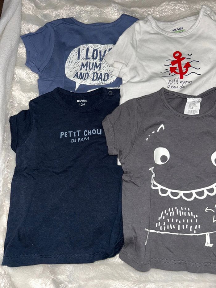 4 t-shirts manches courtes en très bon état de taille 12 mois