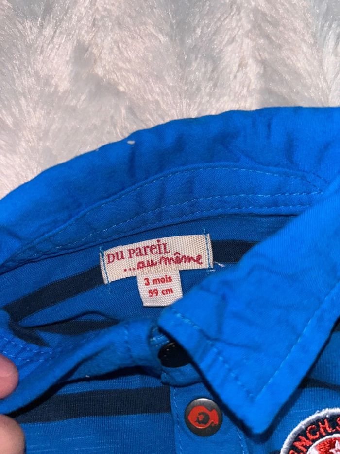 Polo manche longue bleu à ligne en très bon état de taille 3 mois