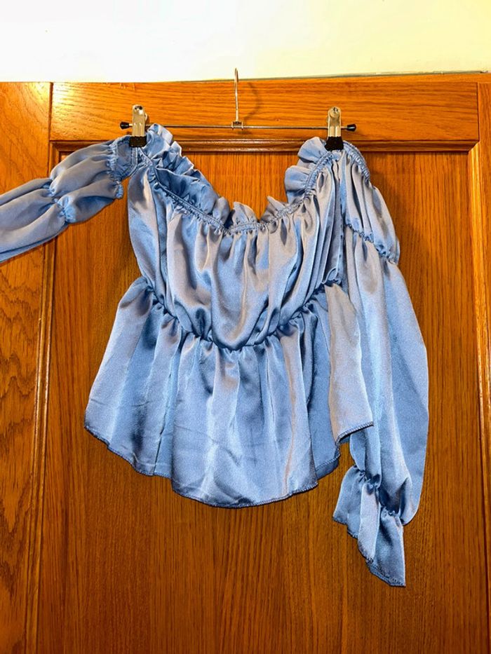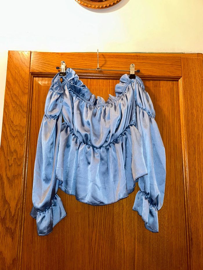 Top épaules dénudées bleu à manche longue en très bon état de taille S