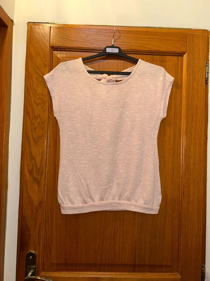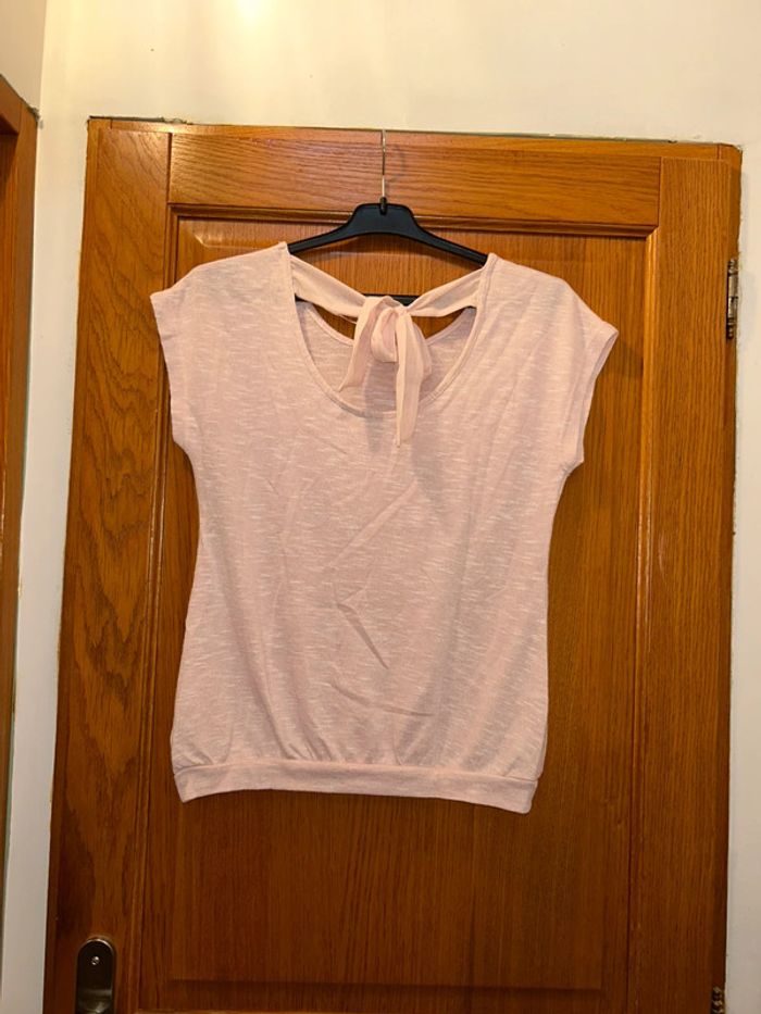 t-shirt rose clair avec noeud dans le dos en très bon état de taille M