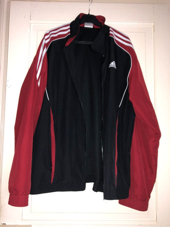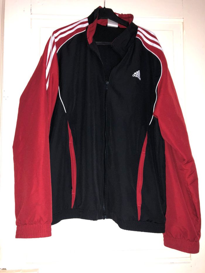 Veste Adidas noir et rouge en très bon état de taille L (192cm), taille un peu grande peu correspondre à un XL N’hésitez pas pour plus d’informations et à faire des lots 🌸 #audreybtailleL