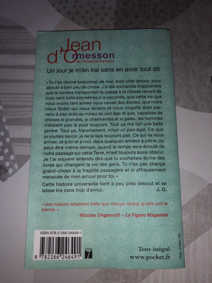 Livre « Un jour, je m’en irai sans en avoir tout dit » de Jean d’Ormesson en très bon état juste petit coup de surligneur à la 1er page voir la dernière photo N’hésitez pas pour plus d’informations et à faire des lots 🌸 #audreybLivres