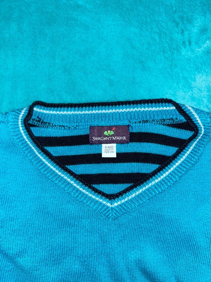 Pull col V bleu en très bon état de taille 8 ans (128cm)