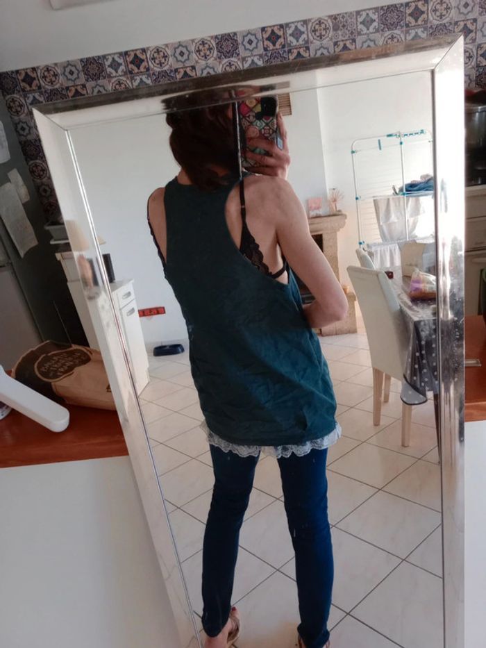 Tunique débardeur femme s type Jean dentelé c80 - photo numéro 8