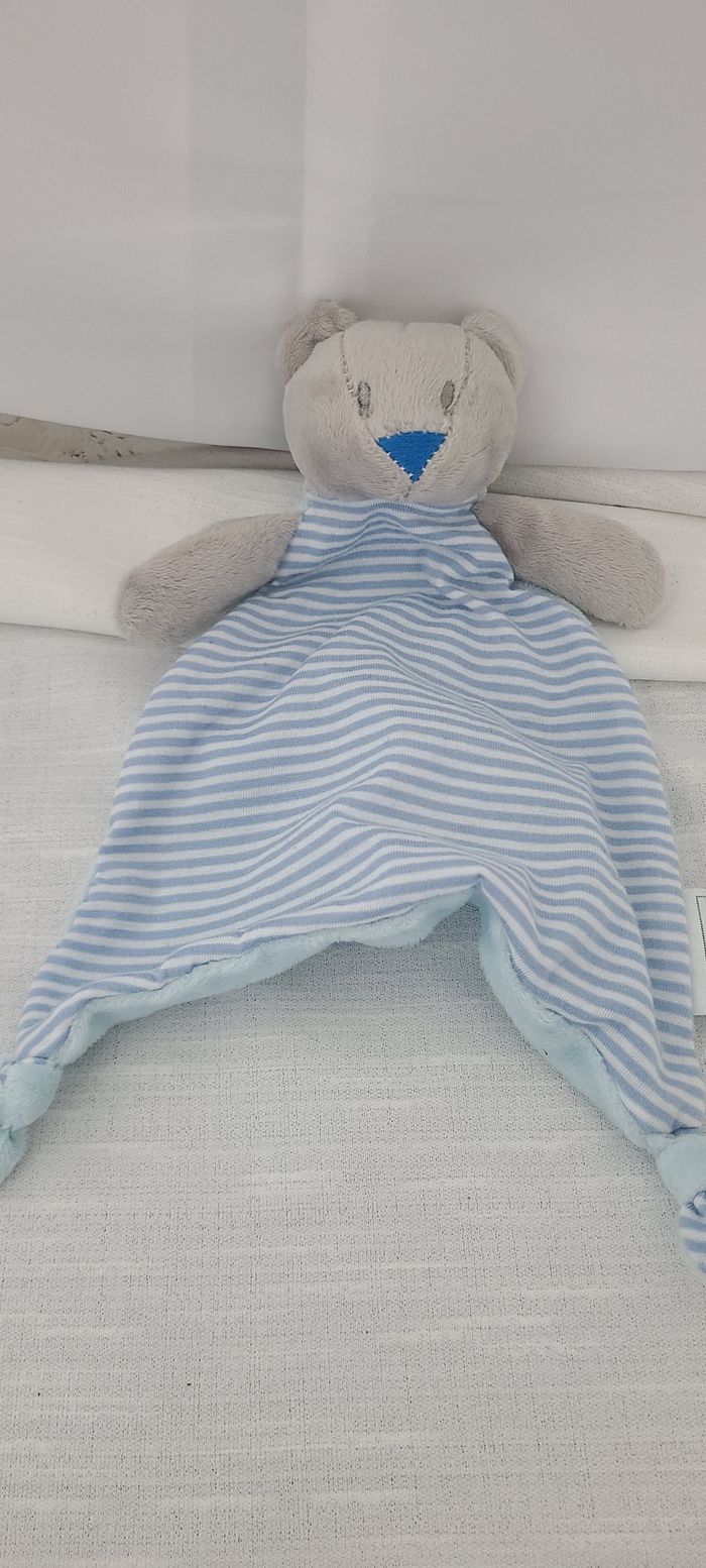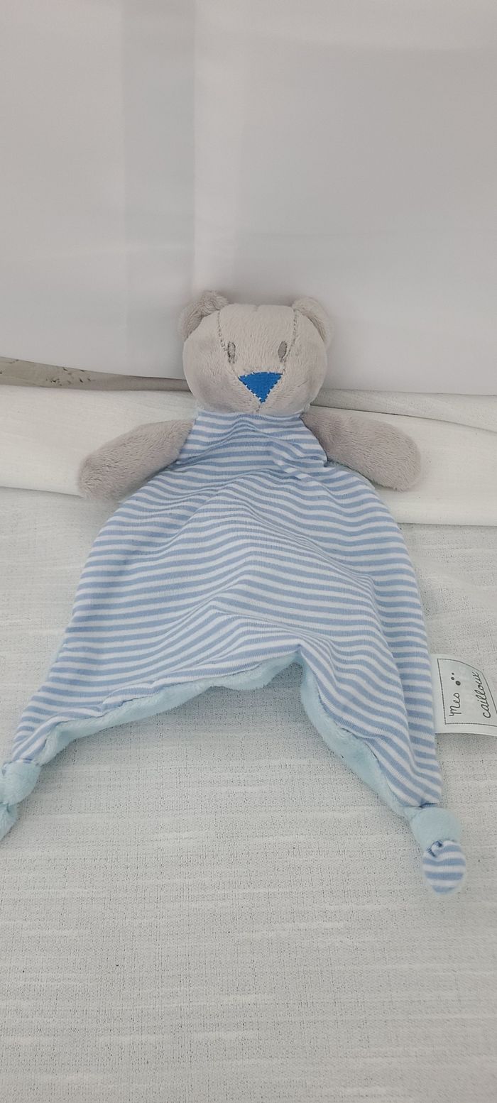 Doudou plat ours bleu rayures Mes Petits Cailloux - photo numéro 1