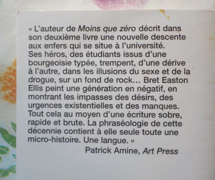 LES LOIS DE L'ATTRACTION de Bret EASTON ELLIS Ed. 10/18 Très bon état Résumé en photo n°2