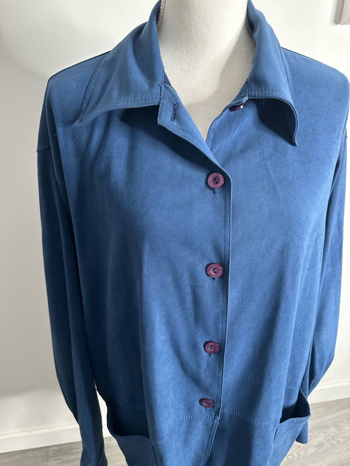 Veste chemise oversize en suédine bleu Vintage T46 3XL - photo numéro 2
