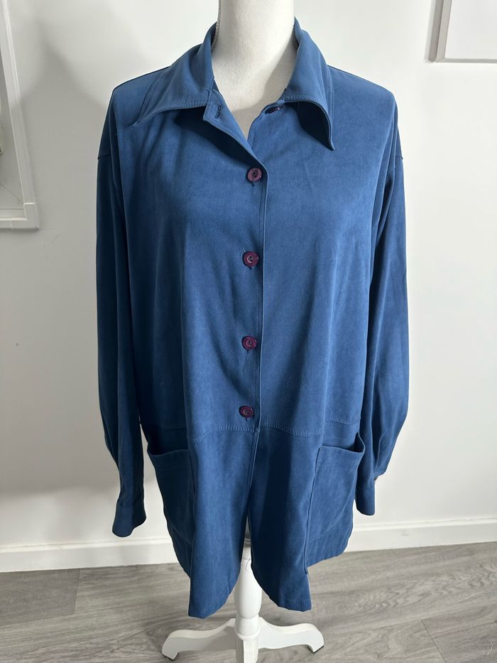 Veste chemise oversize en suédine bleu Vintage T46 3XL - photo numéro 1