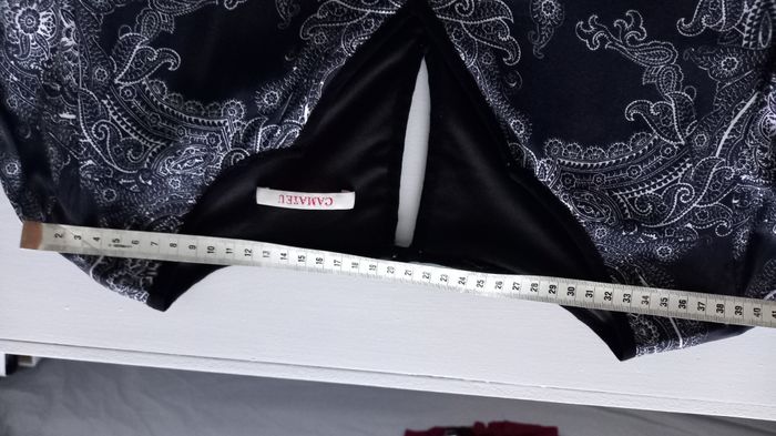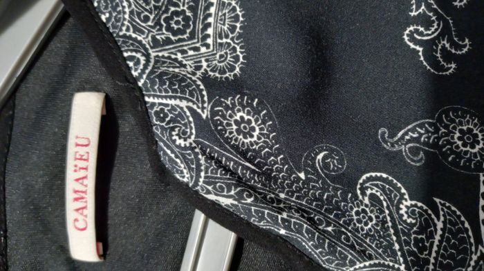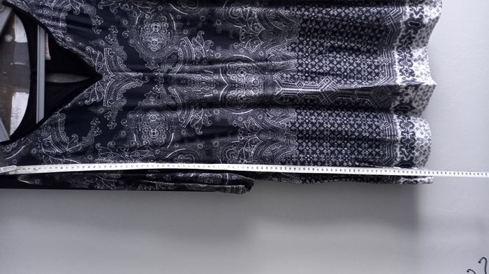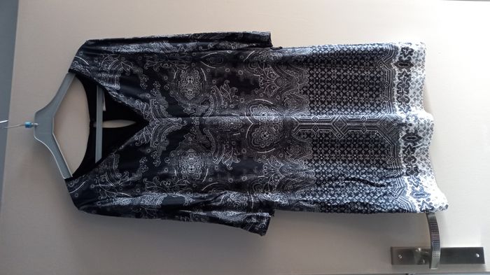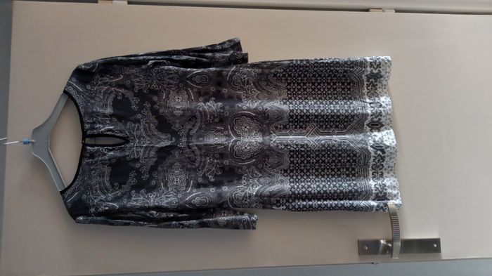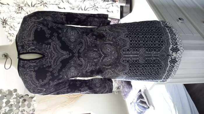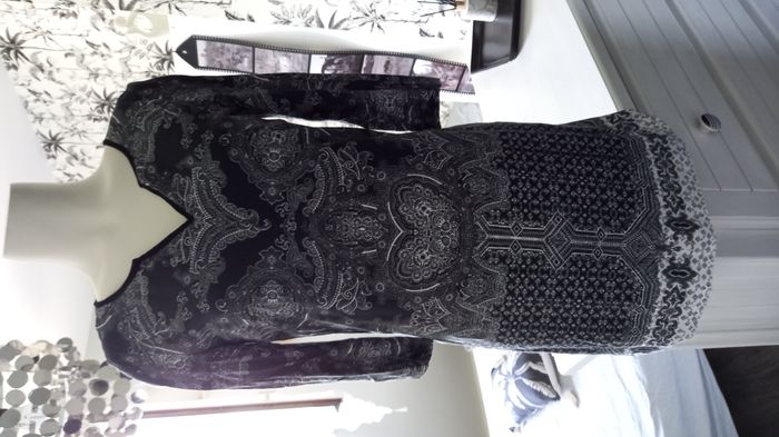 Robe fluide CAMAIEU Coloris noir gris Doublée, manche mi-longue Longueur 85 cm Largeur épaules 38 cm Largeur aisselles 42 cm Taille 38 #T38_imoddeco