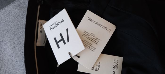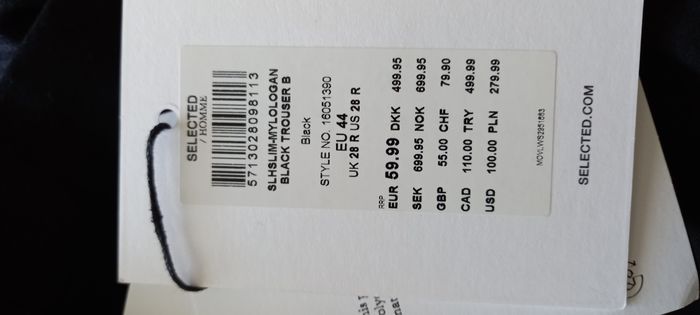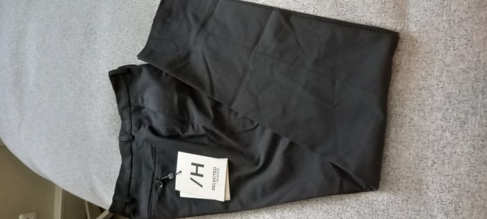 Pantalon Mylologan Selected Slim noir Polyester recyclé 2 poches biais devant 2 poches arrière Neuf jamais porté Longueur 102 cm Largeur taille 38 cm Largeur bas pantalon 16 cm Taille 38 Prix d’achat 59.99 € #homme_imoddeco #T38_imoddeco