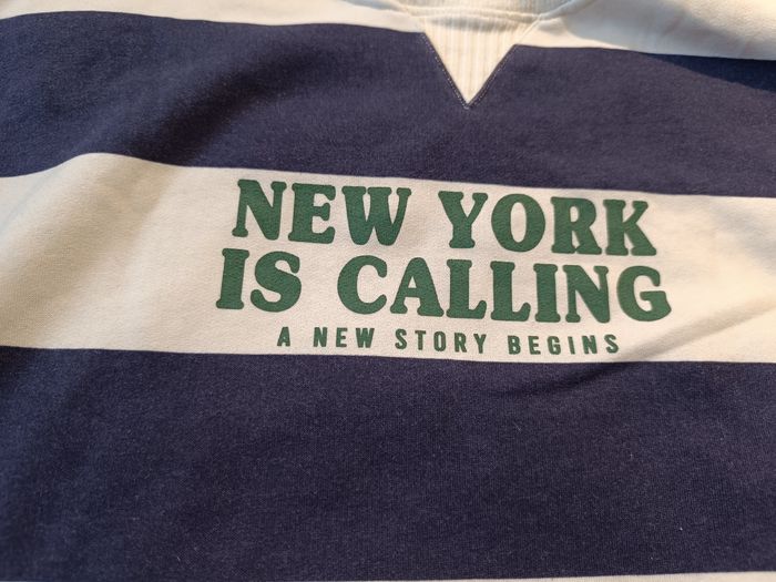 Sweat Col Rond Garçon Blanc ligné bleu Inscription Devant Zara 13-14 ans /164 cm Très Bon État