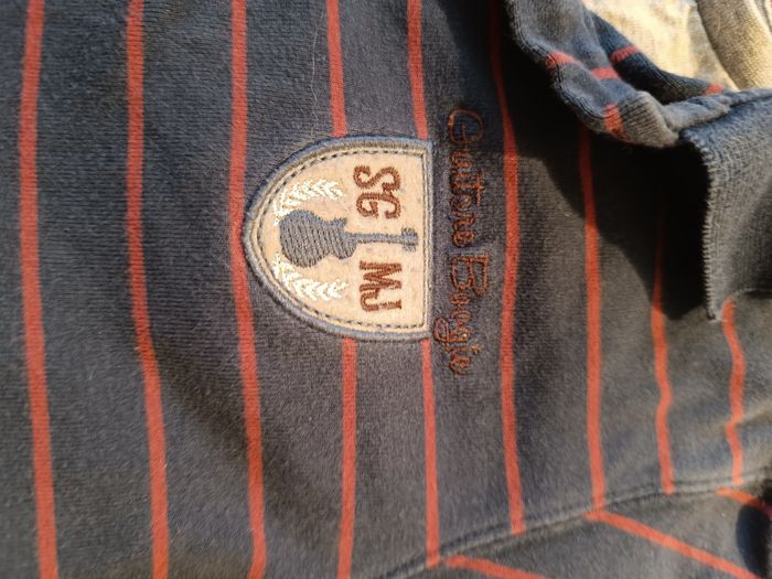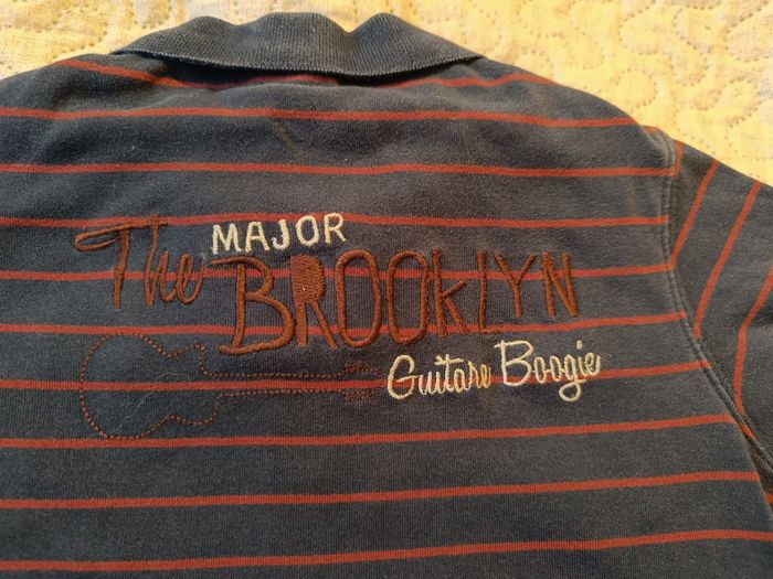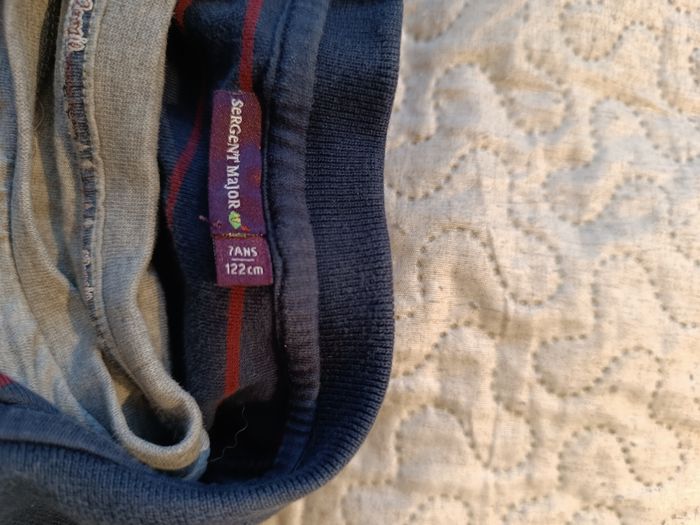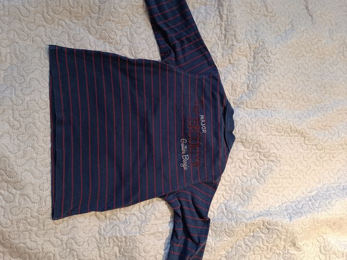 Polo Garçon Manches Longues Effets 2 en 1 Bleu ligné rouge Inscription dans le dos Sergent Major 7 ans /122 cm Bon État