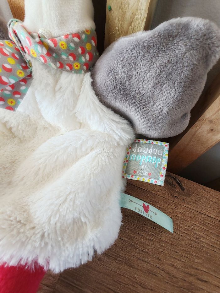 Doudou marionnette cigogne KALOO Nopnop blanc gris 41 cm environ Tbe 15 euros envoi en relais Étiquette marque présente