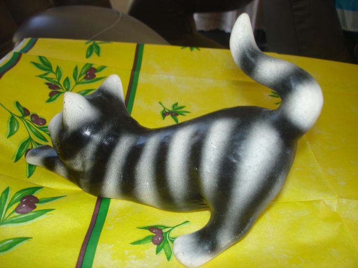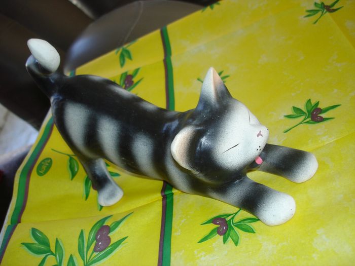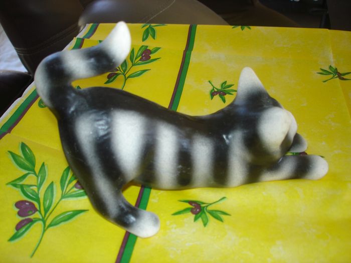 Joli sujet "Petit CHAT noir & blanc qui s'étire" en plâtre Dimensions: Longueur 18,5cm En très bon état