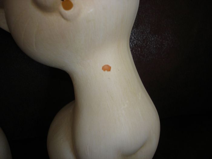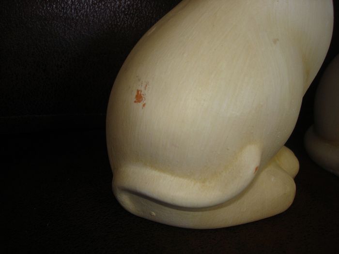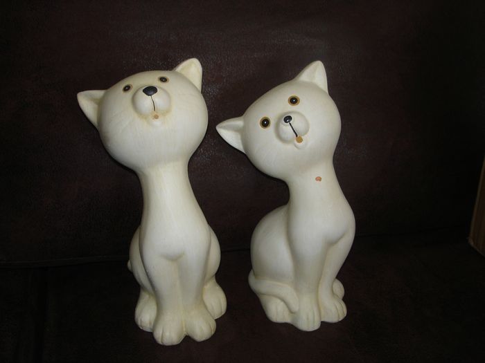 Joli sujet "Couple de Chats" (grand modèle) en plâtre Dimensions: Hauteur 25cm - Largeur environ 12cm En bon état (la couleur est retirée par endroit, voir les photos)