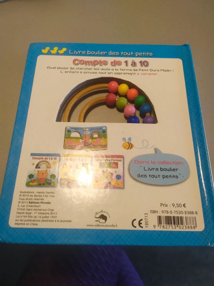 Livre avec boulier pour compter de 1 a 10 Légèrement abîmé sur l'extérieur des coins voir photo