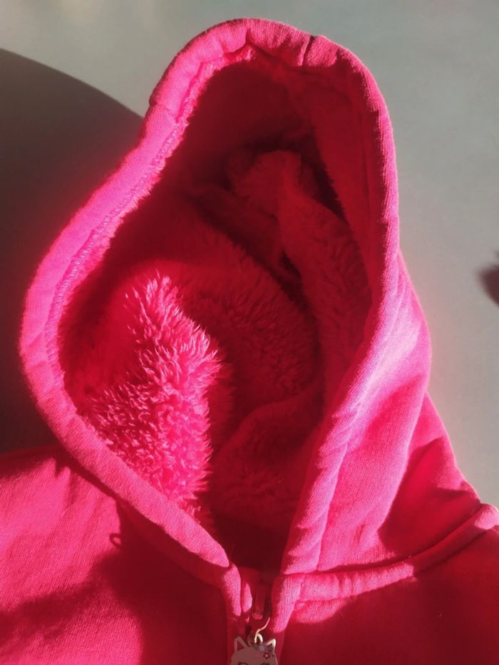Utilisée a l'automne par dessus un t-shirt ML Bien chaud Un peu de peinture manquante sur le fermoir Ma fille l'adore malheureusement il est trop petit
