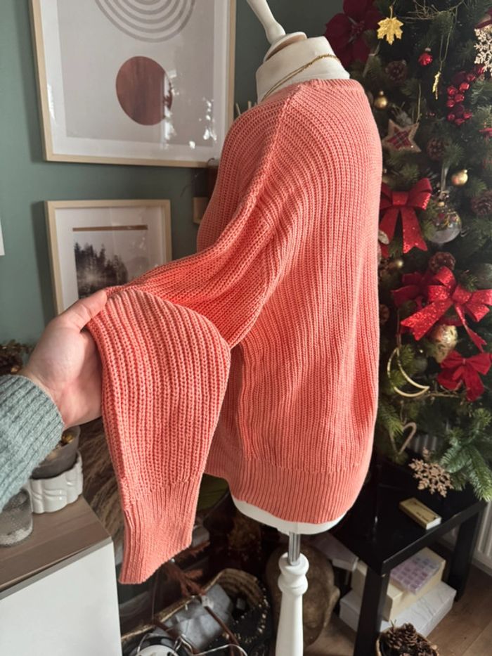 Pull en maille serré 100% coton rose corail abricot taille XL En parfait état #clairevidesondressingxl