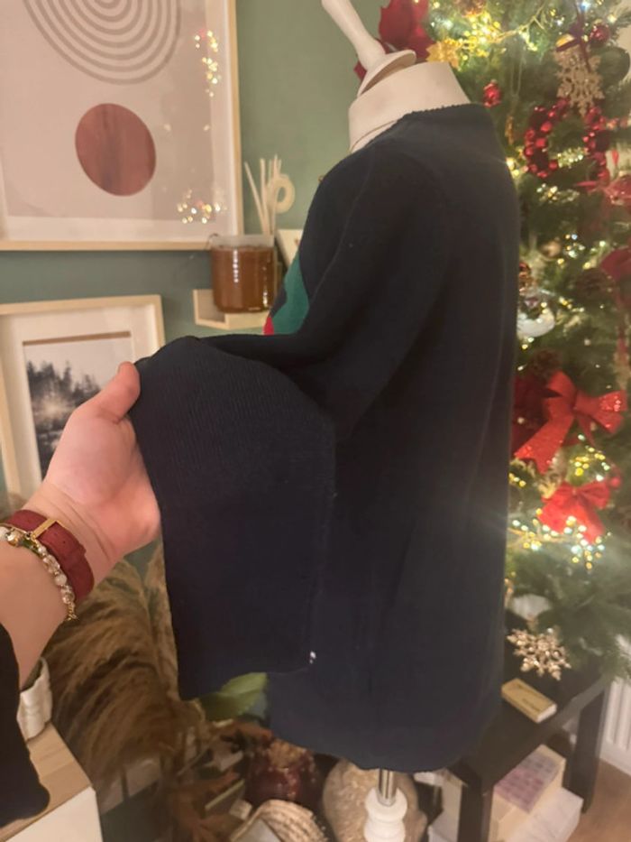 Pull de Noël taille L bleu marine rouge vert blanc avec cloches - photo numéro 2