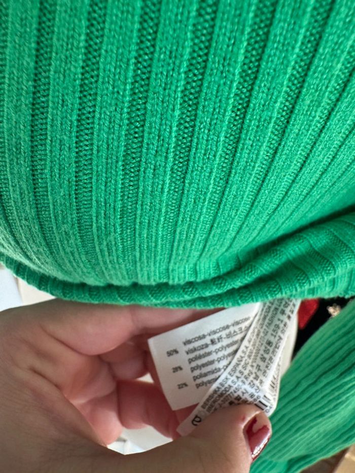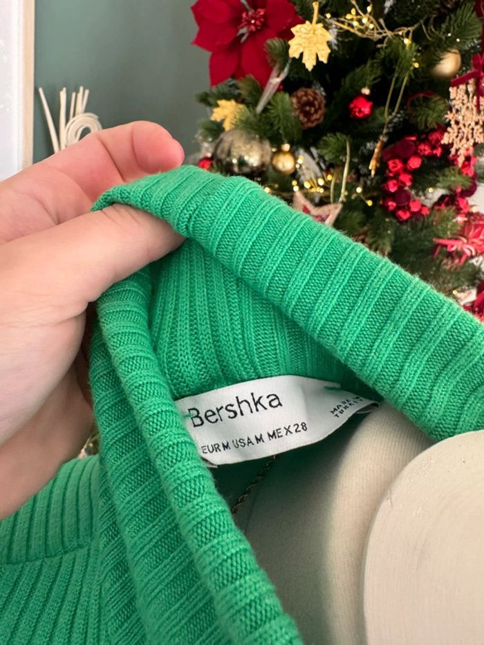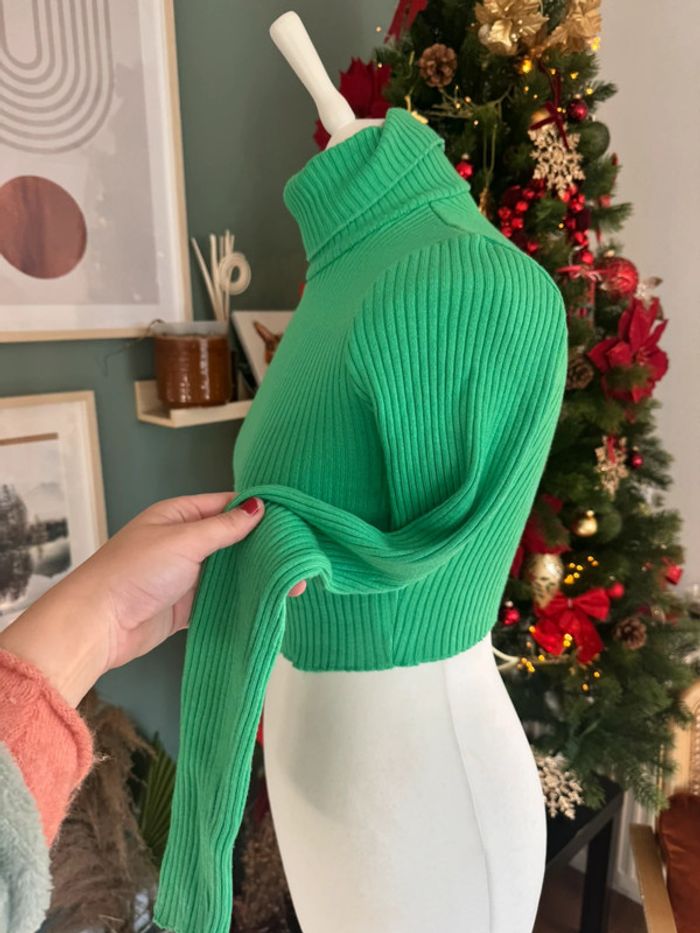 Pull col roulé près du corps Bershka crop top vert flashy taille S/M - photo numéro 2