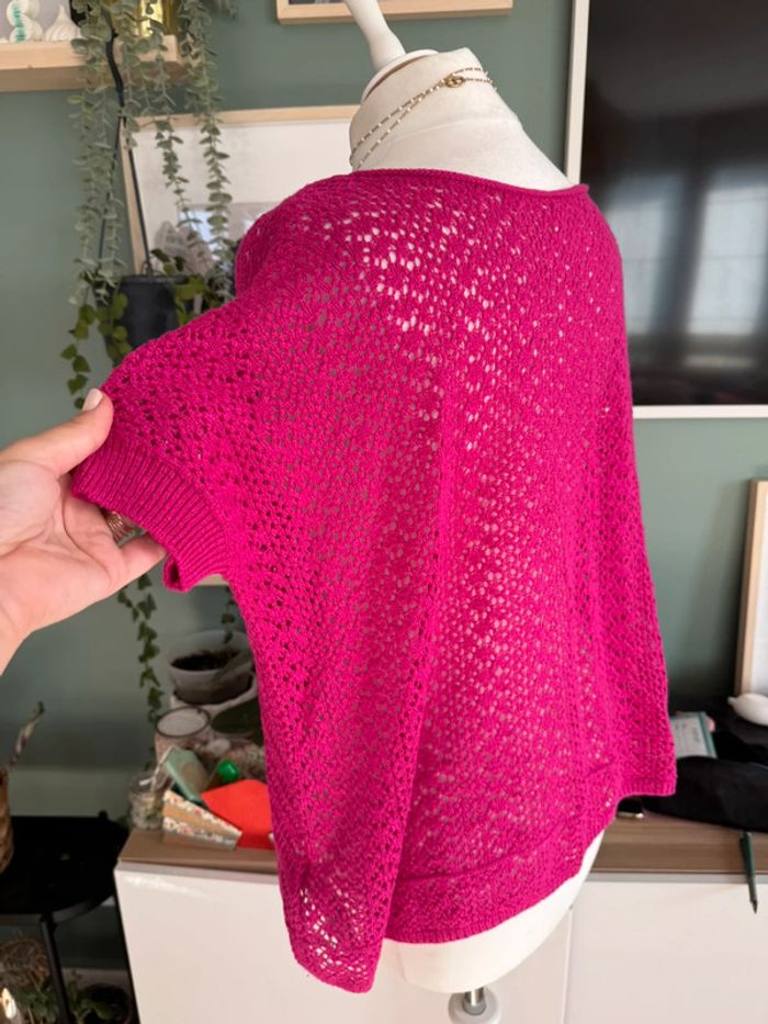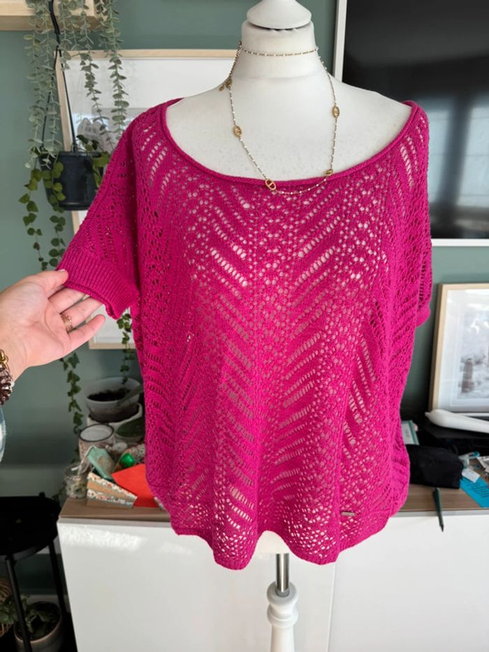 Blouse t-shirt en maille ajouré Fushia Hollister taille S ample En parfait état #clairevidesondressingtailles