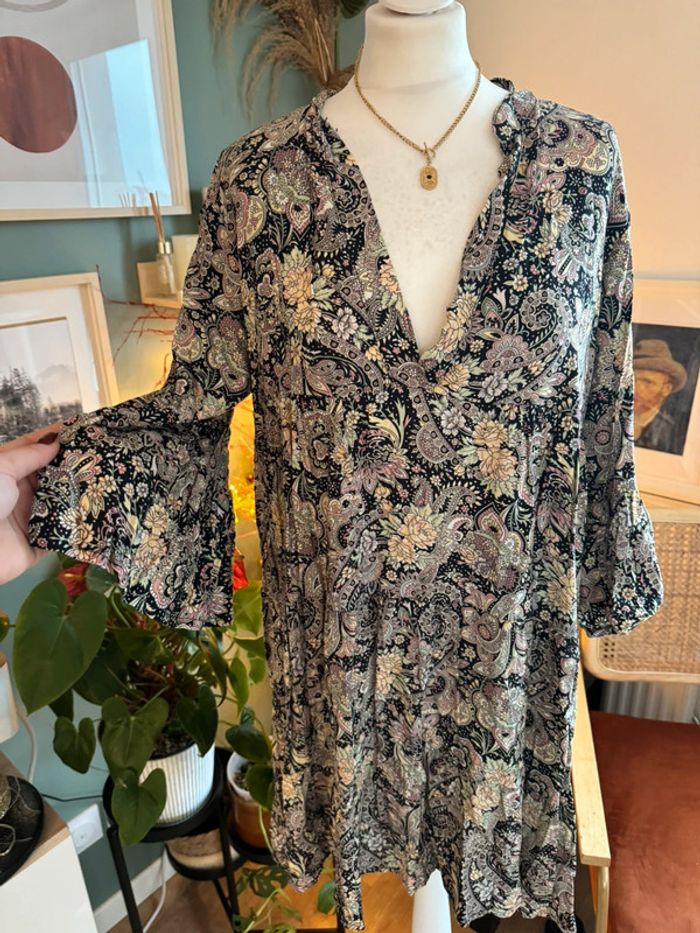 Robe manches  3/4 multicouleurs noir jaune vert bandana taille M - photo numéro 2