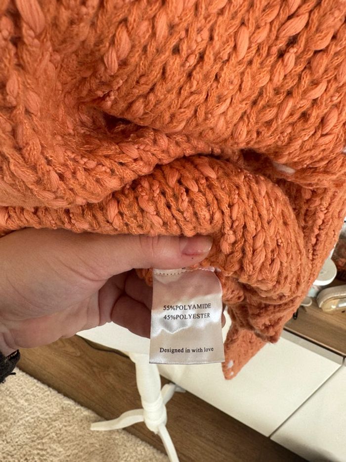 Pull en maille tressé doux ample oversize orange abricot blanc taille L/XL - photo numéro 4