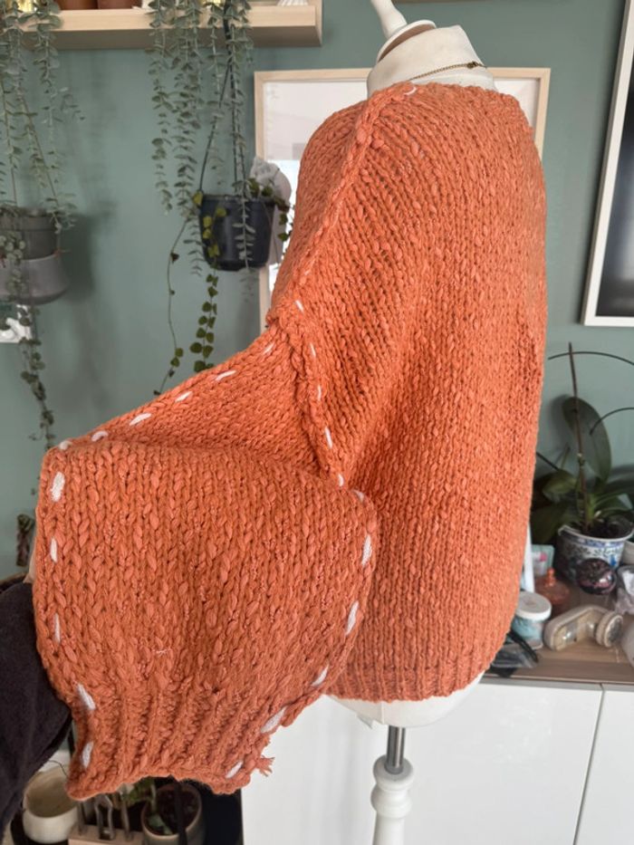 Pull en maille tressé doux ample oversize orange abricot blanc taille L/XL - photo numéro 3