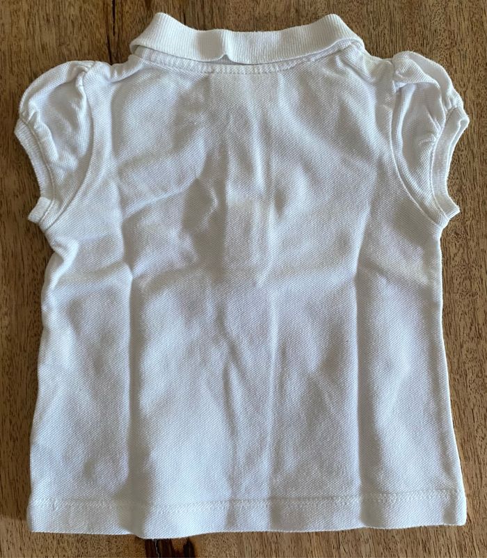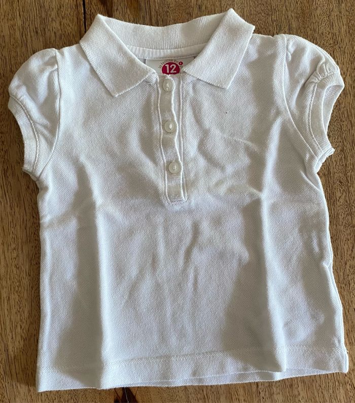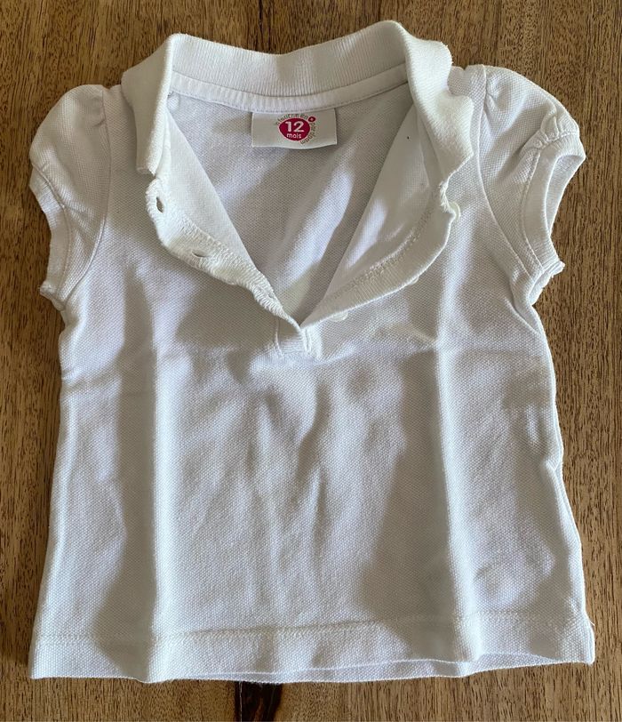 T-shirt blanc manche courte Sans tache Ouverture du col avec 3 boutons. 95% coton et 5 % elasthanne.