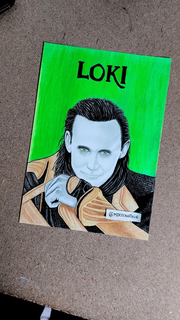 Portrait de Loki Format A4 Fait à la main Cadeau idéal pour un fan de Marvel