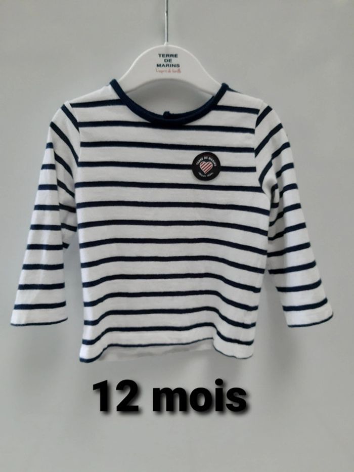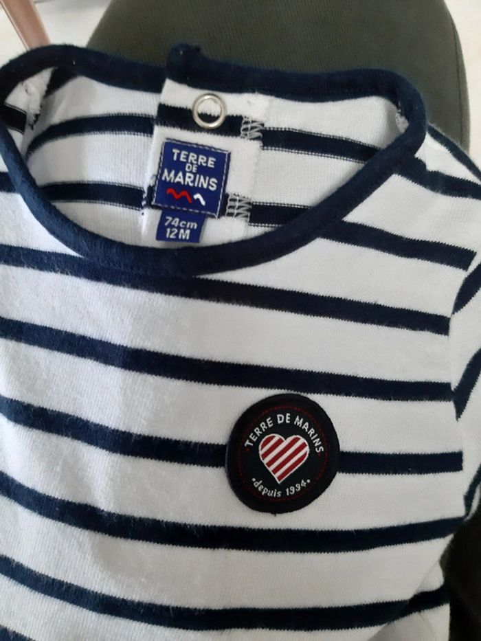Bleu marine et blanc. 100% coton. Porté une seule fois car trop petit. Acheté 15€.