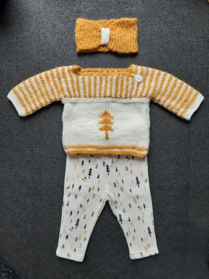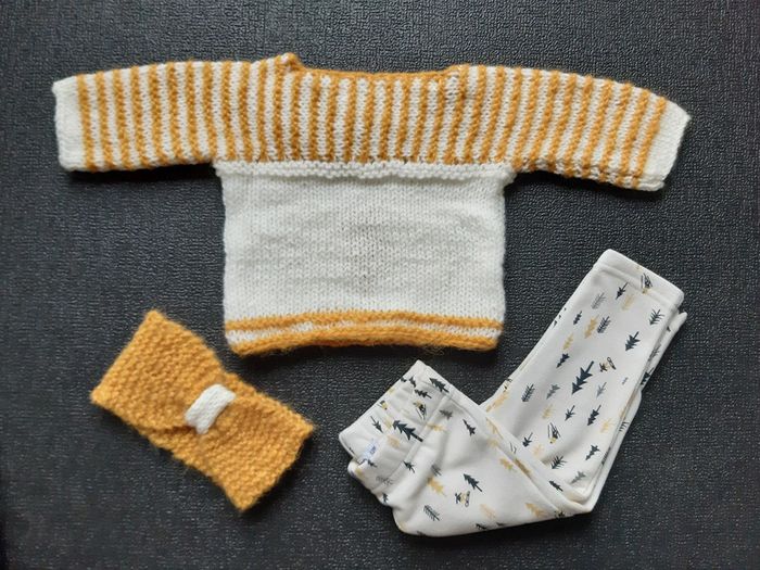 Le pantalon est neuf et en parfait état, l'intérieur est bien chaud et super doux. Le pull et le bandeau sont faits à la main dans une laine très douce.
