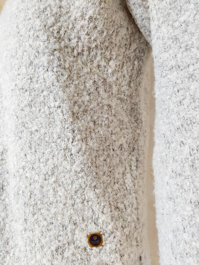 Pièce unique ayant été traitée individuellement pour faire apparaître certains effets spéciaux. 60% laine 25% alpaga